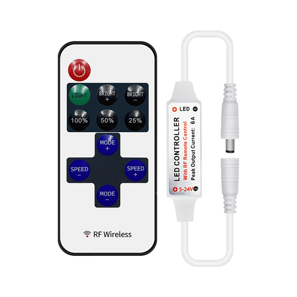 Sterownik z pilotem jest podstawowym elementem wszystkich akcesoriów do taśm LED mono (jednokolorowych). Pozwala na bezprzewodowe sterowanie oświetleniem w zależności od preferencji.