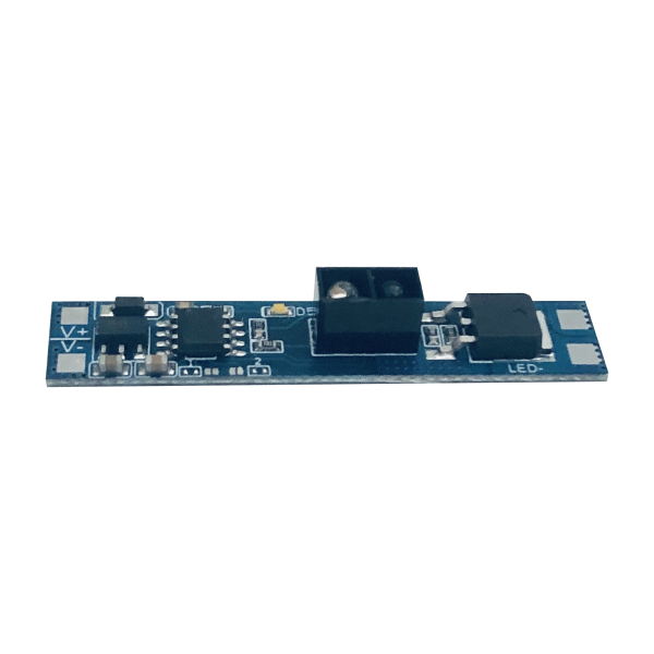 Włącznik ze ściemniaczem, bezdotykowy do taśm LED, o natężeniu pracy max. 8A i stopniu ochrony IP20. Jest to drobne urządzenie o wymiarach 10 x 48 mm umożliwiające uruchomienie i wyłączenie taśmy LED w profilu bezdotykowo (wystarczy poruszyć ręką w zasięgu do 6 cm od włącznika). Wymiary pozwalają na montaż w profilach o szerokości wewnętrznej powyżej 10 mm.