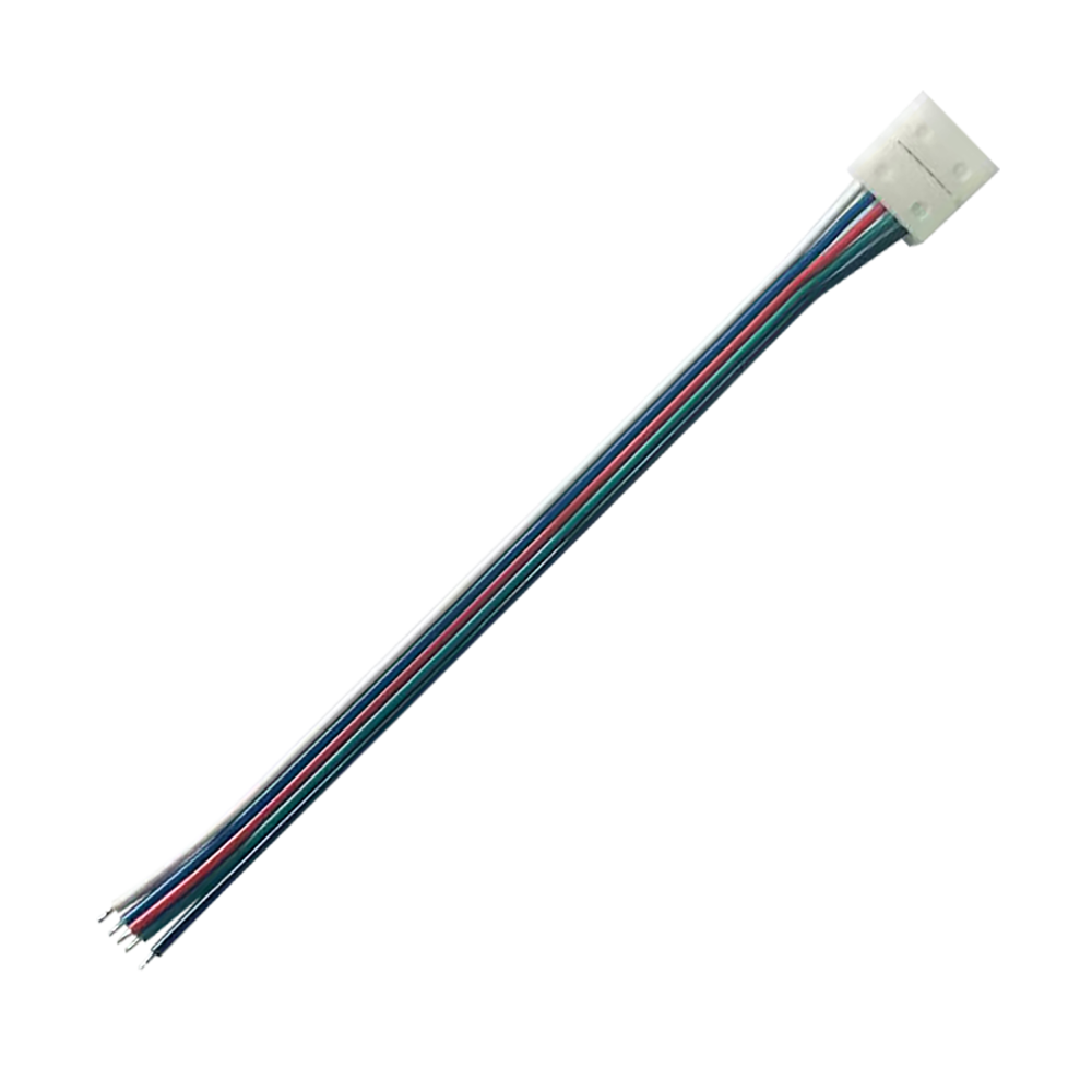 Złączka jednostronna z przewodem do taśm LED o szerokości 12 mm i mocy max. 48V. To wygodne rozwiązanie szybkiego podłączenia taśmy LED RGBW (światło białe i kolorowe) do zasilacza, kontrolera lub kolejnego przewodu.